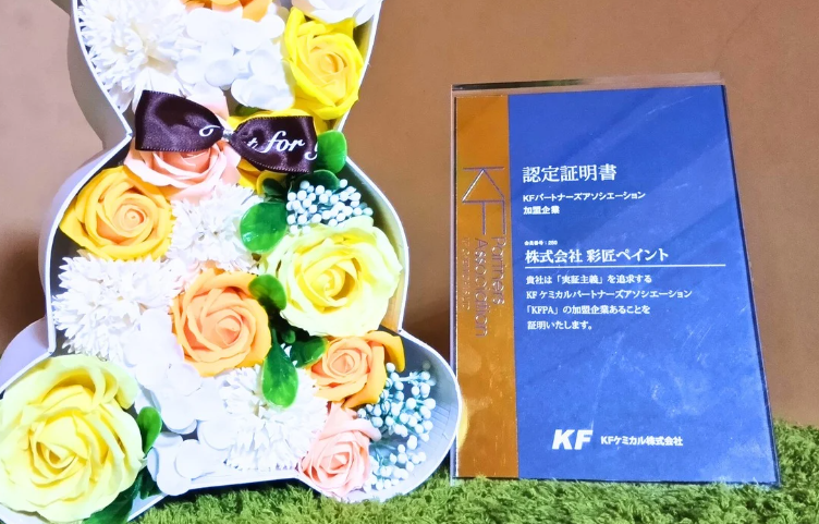 彩匠ペイントは、KFケミカル様の正規パートナーとして、厳しい基準をクリアした高品質塗料のみを使用しています。長期耐候性や安全性に優れた材料を正しく選定し、住まいを長く守る施工をお約束します。メーカーと連携した確かな技術と情報で、安心してお任せいただける体制を整えています。